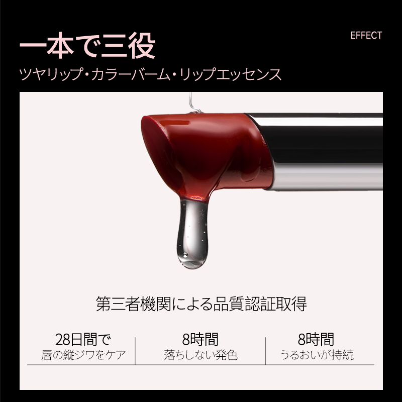 3D プランピング効果:三重の光反射成分で、ふっくらと輝く唇を実現。