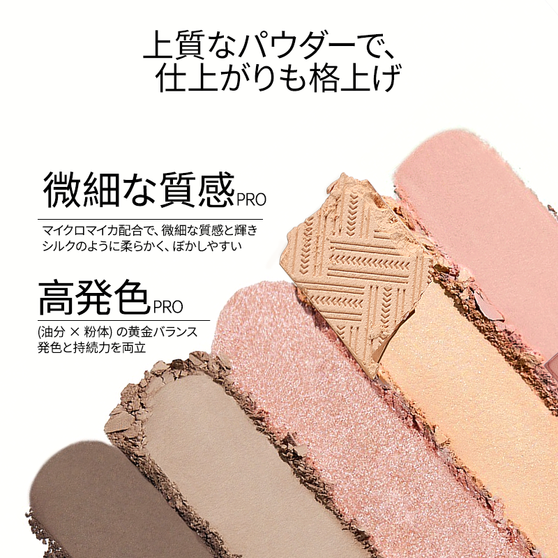 完璧なピグメントバランス:PROオイル・トゥ・パウダー処方で、鮮やかで長時間持続するカラーを実現。